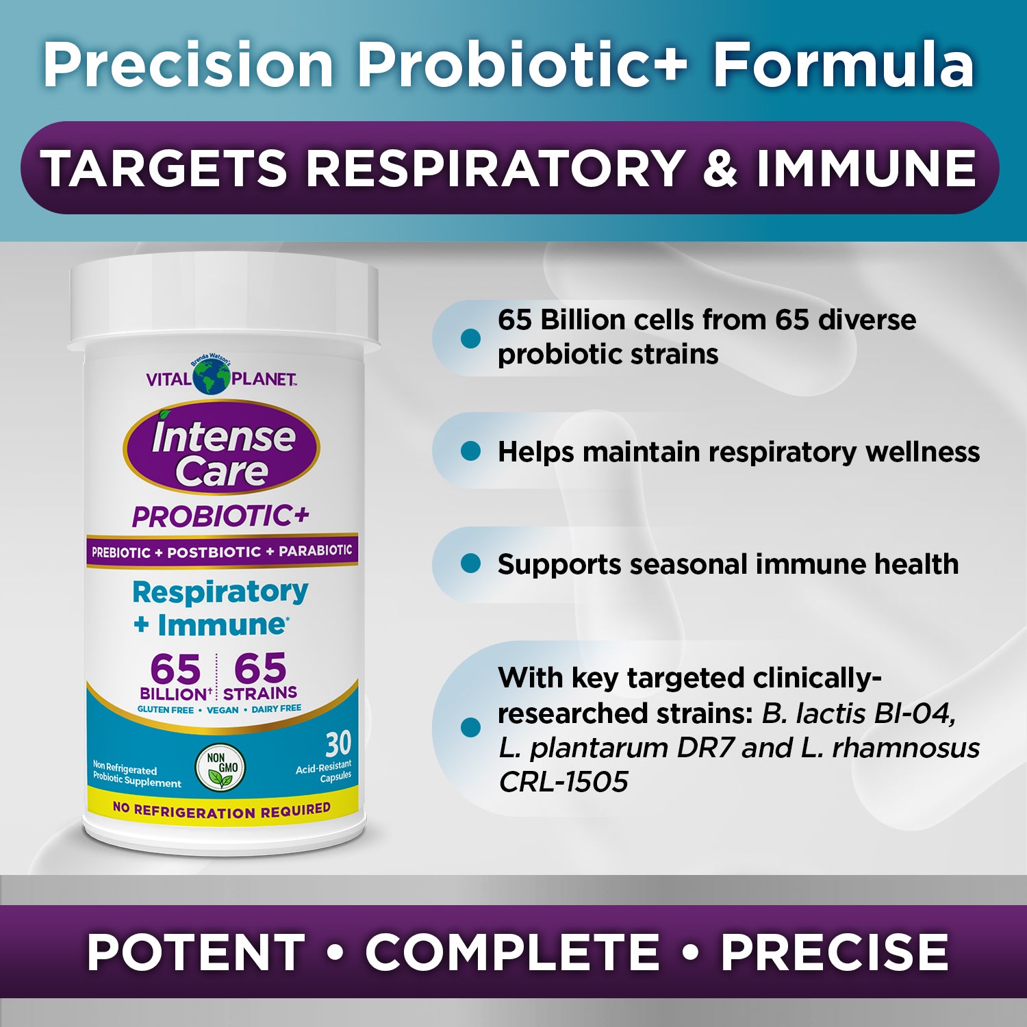 Vital Planet's Intense Care formulas deliver four essential biotic elements — prebiotics, probiotics, postbiotics, and parabiotics — working together in synchronized harmony. This complete formula provides targeted support for digestive health immune function and more.*