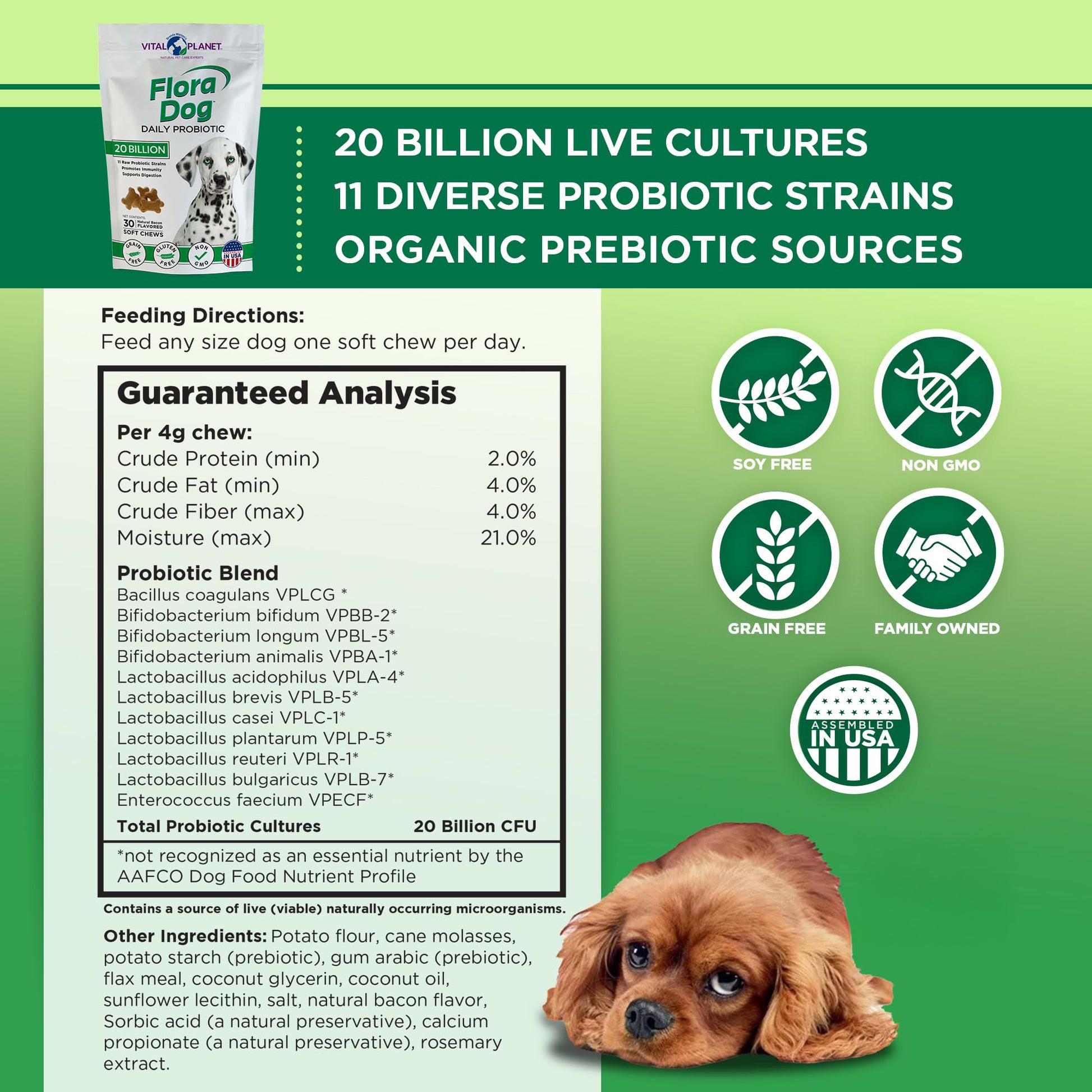 Probiótico de alta potencia para perros Flora - Masticables, 30 unidades