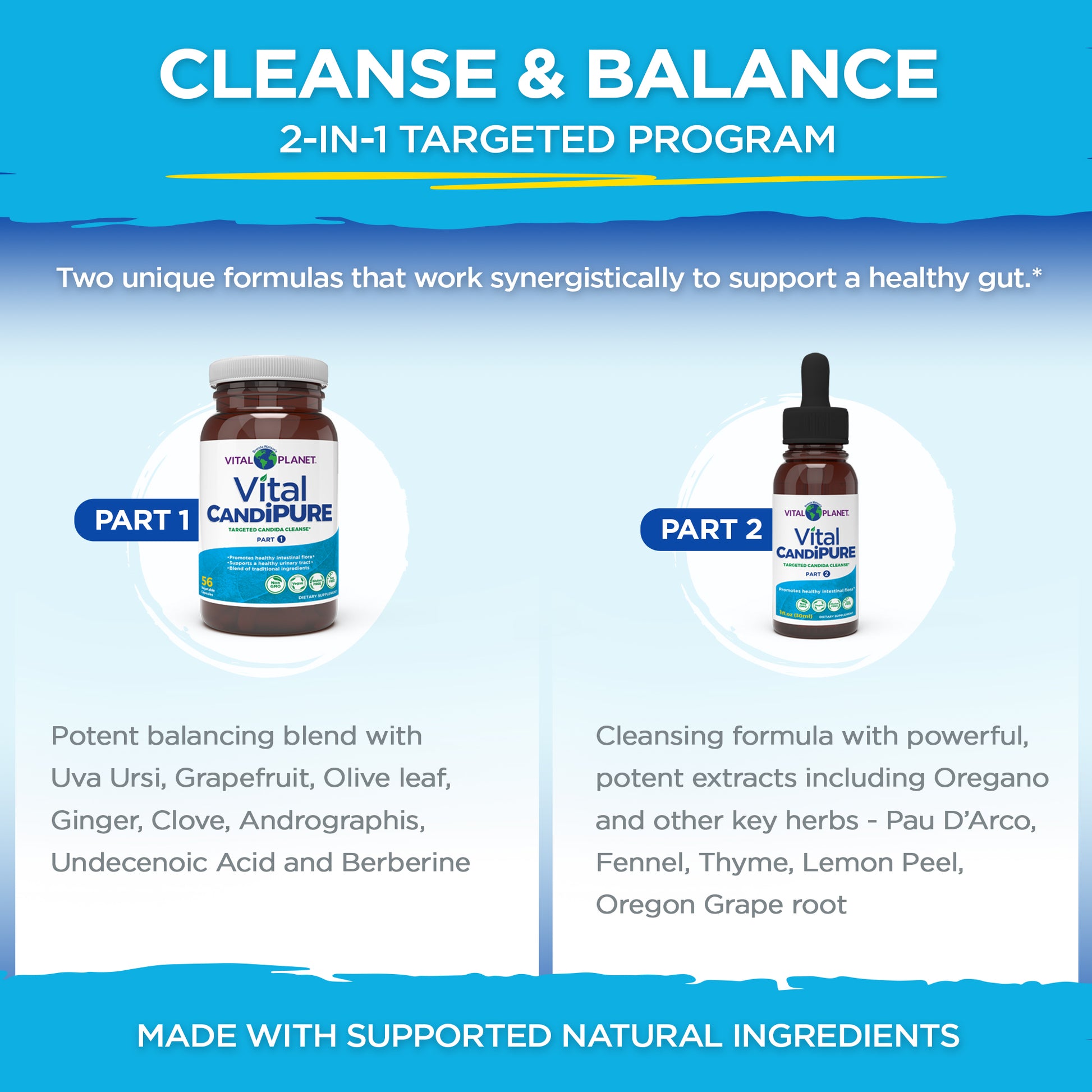 - Limpieza y equilibrio: 2 fórmulas únicas trabajan juntas para ayudar a limpiar su cuerpo del crecimiento excesivo periódico y ayudarlo a recuperar el equilibrio para que se sienta con más energía*