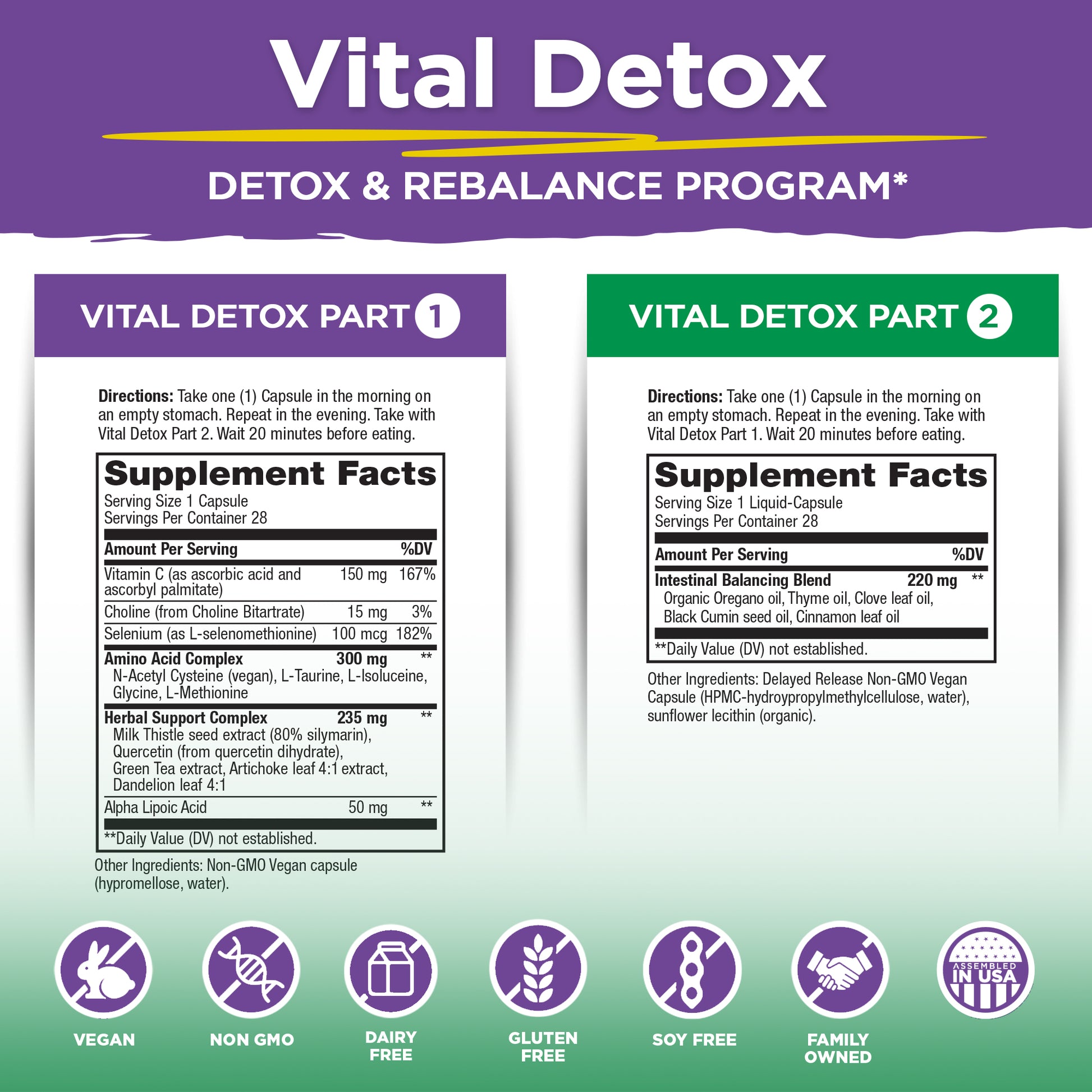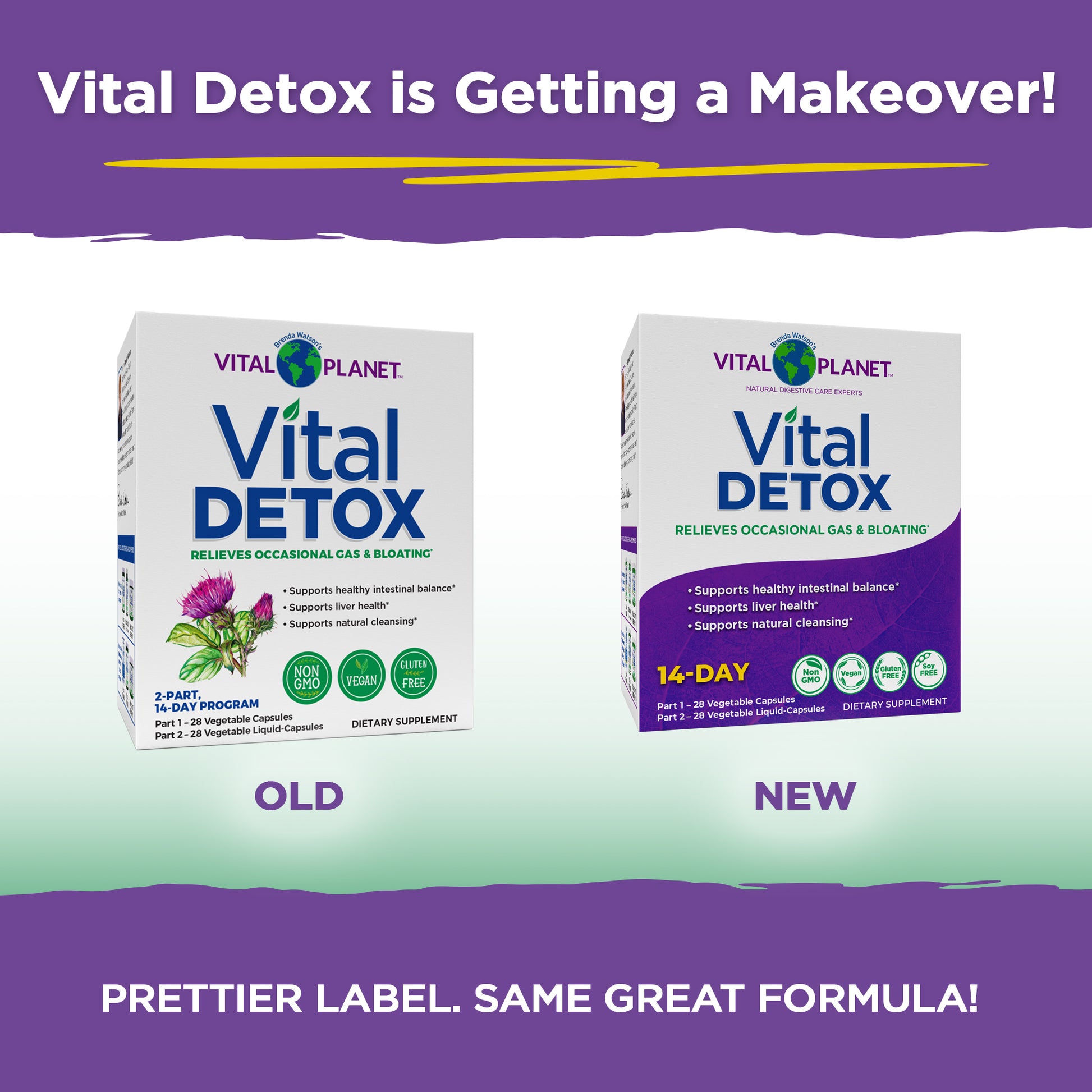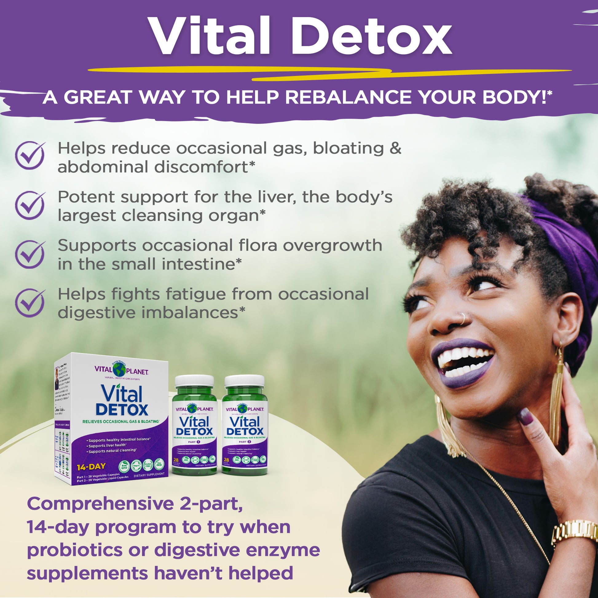 Si otros suplementos no te han ayudado, prueba VITAL DETOX. Es una forma más completa de abordar los gases, la hinchazón y las molestias abdominales ocasionales que no alivian los probióticos ni las enzimas digestivas. Utiliza un enfoque específico que favorece la desintoxicación hepática y promueve el equilibrio de la flora intestinal para que te sientas mejor de nuevo.*