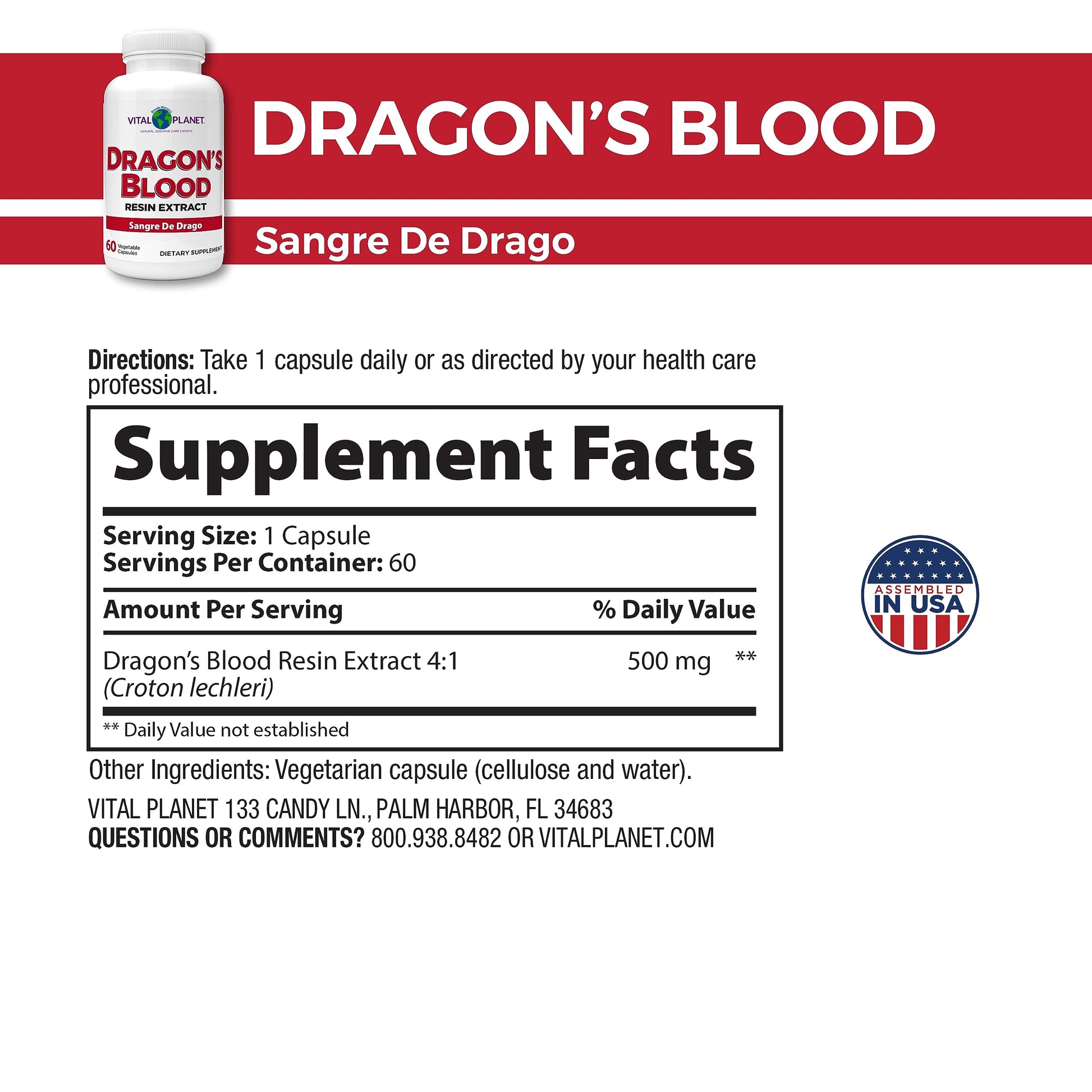 - High potency Dragon’s Blood 500 mg using 4:1 resin extract from croton lechleri (Sangre de Drado)