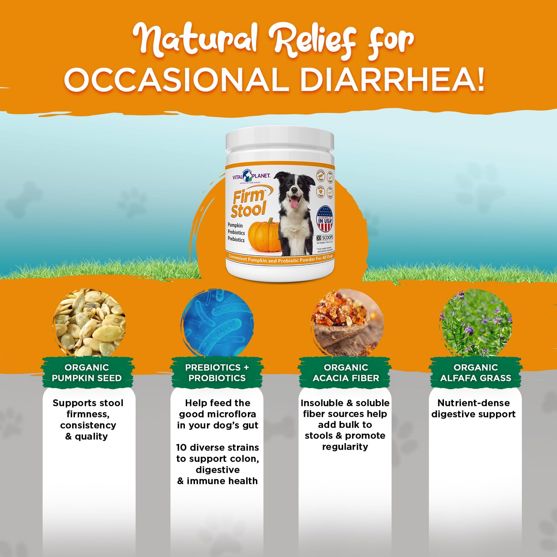 Your dog wants to be regular too! FIRM STOOL is uniquely formulated to help you manage your dog’s occasional diarrhea and colon health for firmer stools you and your dog will be proud of.