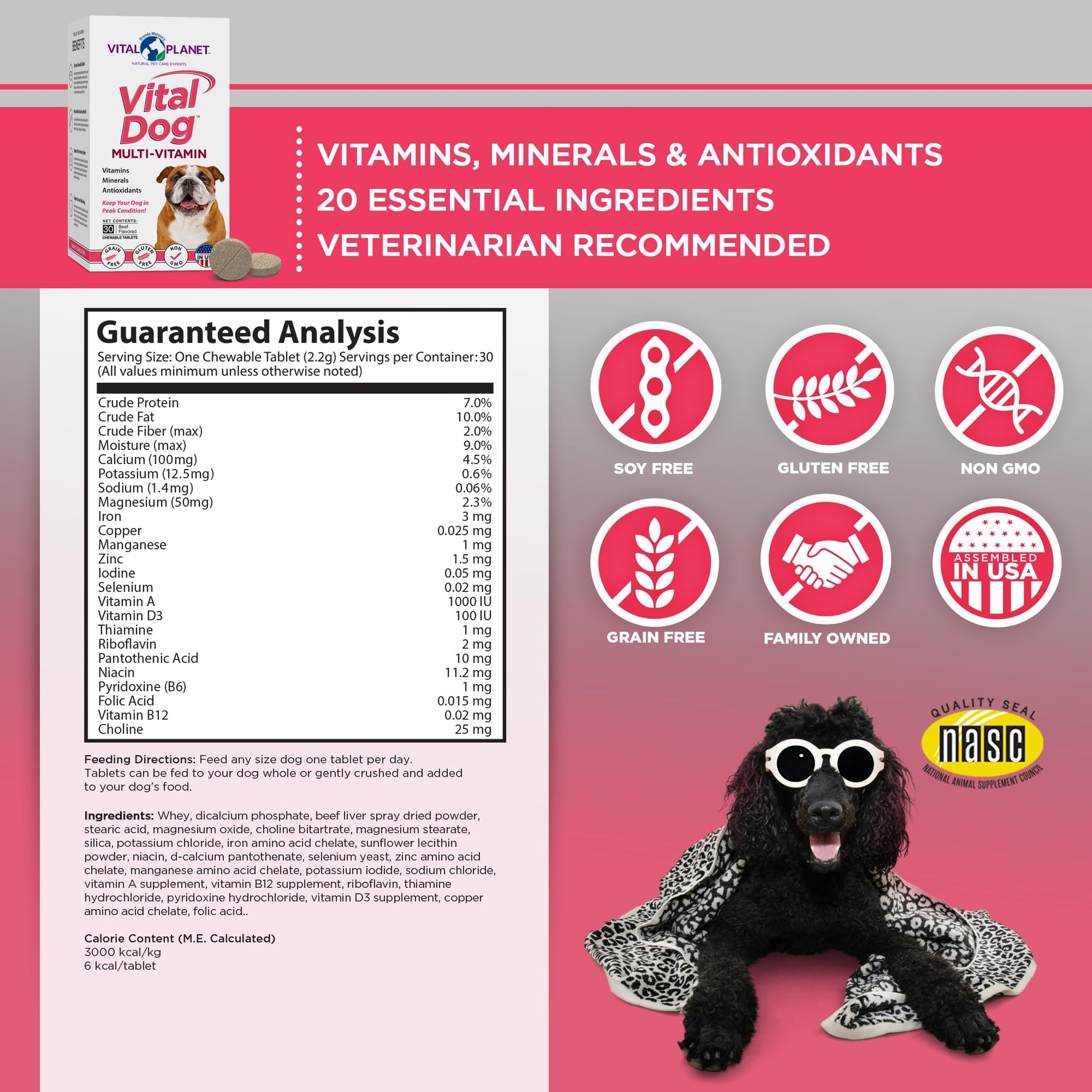 - A quality multivitamin formula like Vital Dog is considered a good foundation for a dog’s supplement needs. Combine it with Omega-3s, probiotics, digestive enzymes and a joint support formula for a well-rounded supplement plan.