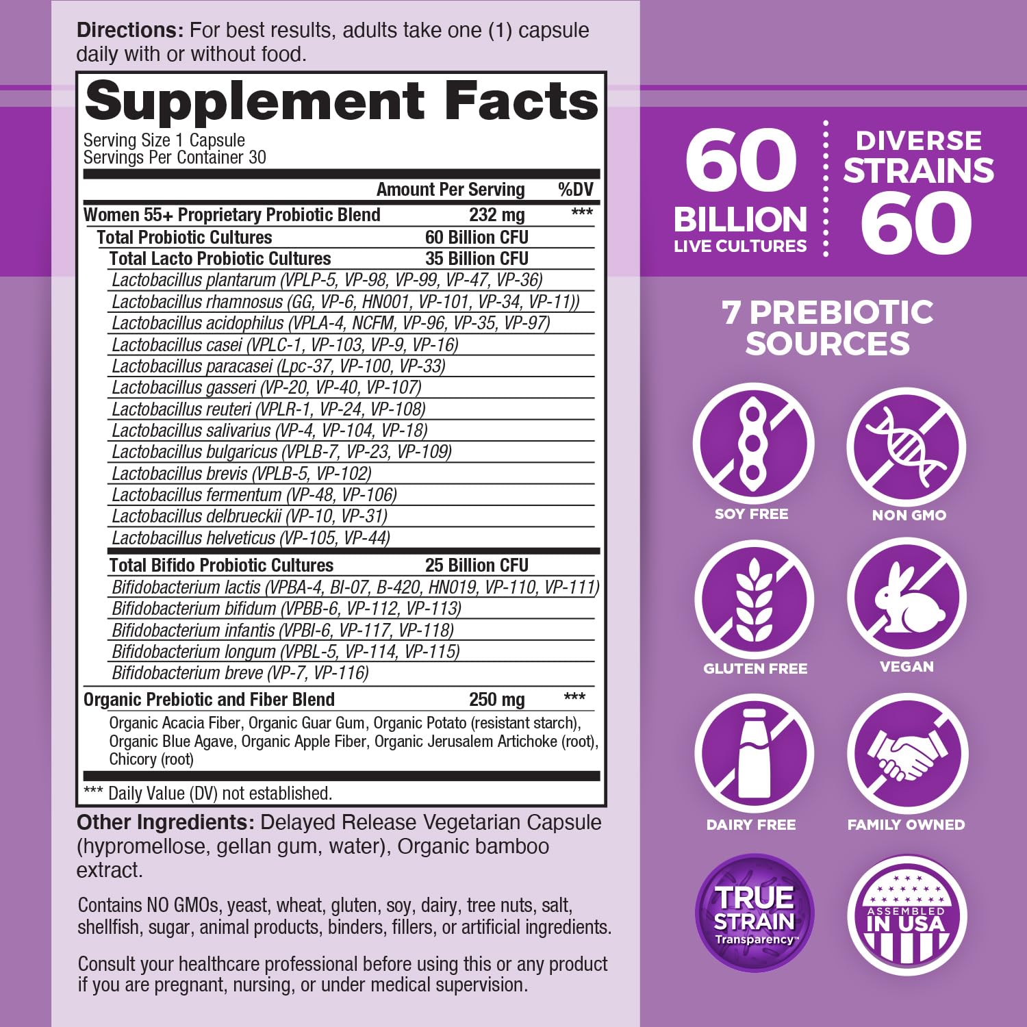 Vital Flora Women 55+ Daily Probiotic, 60 Billion CFU, 60 Diverse Strains For Women + 7 Organic Prebiotics