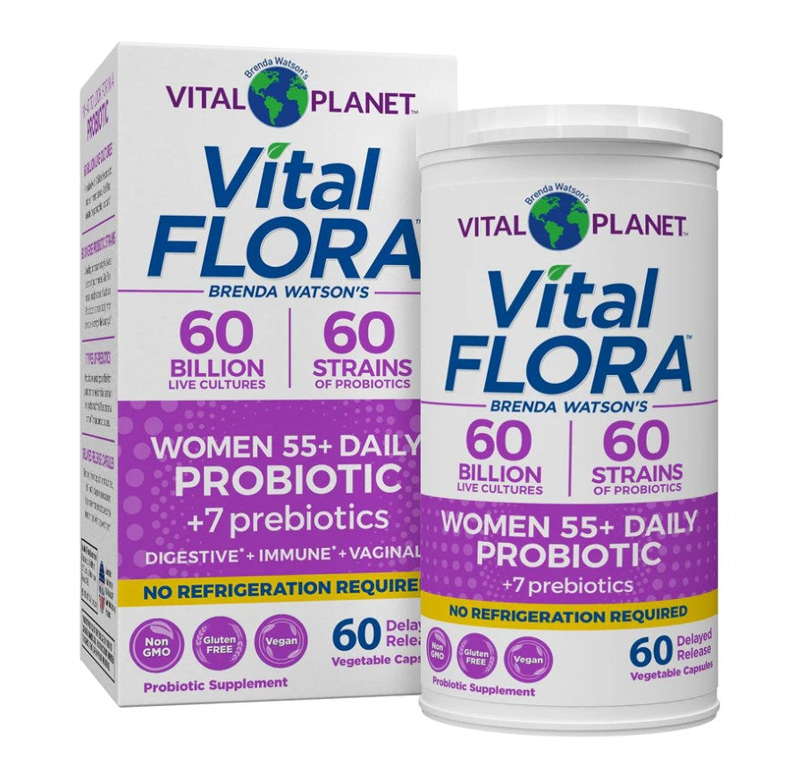 Ladies, feel more confident in your daily probiotic! VITAL FLORA WOMEN 55+ DAILY contains a special ratio of beneficial probiotics with more Lactobacillus strains for women over 50 to support your vaginal, digestive, urinary and immune health.*